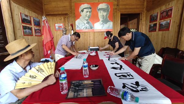 中共浮梁县昌南书画院党支部6月17日在浮梁县赣东北红色家园举行党支部生活日,庆祝建党99周年,接受红色革命精神教育。在党员艺术家笔会交流中,中共党员姜渭乐提议加强江西老区红色艺术创作交流,结合瓷都书画艺术人才多的优势,建议赣东北红色家园领办红色书画院,中共党员李金民建议充分发挥红军戏台作用,提议赣东北红色家园组建红色文工团的提议,得到了赣东北红色家园的现场响应!参加红色精神教育的部份演员,部份书画家与包家老区文艺、书法工作者代表交流见证、合影留念,鱼水情意,红味浓浓。
