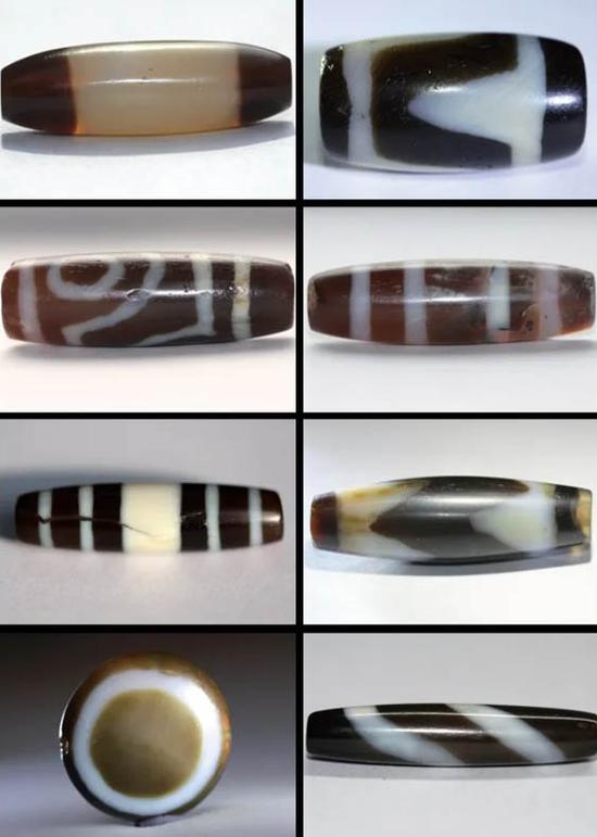 在一般的了解中,人们普遍将天珠和藏族人民紧密联系在一起——天珠备受藏族人尊崇,兼具装饰和护身符双重功用。确实,从现有的考古资料来看,藏族对天珠的尊崇可以追溯到公元前一千纪;天珠被认为是“非人间凡物”,具有特殊护佑功能。“天珠”之“天”,既是宗教上所讲的天神,又有“外来的”之义。许多西方学者在研究中又将其称为“瑟珠”“蚀花玛瑙珠”“猫眼石”等。
