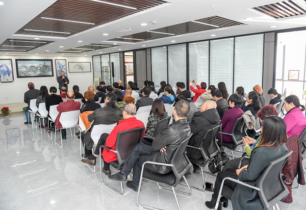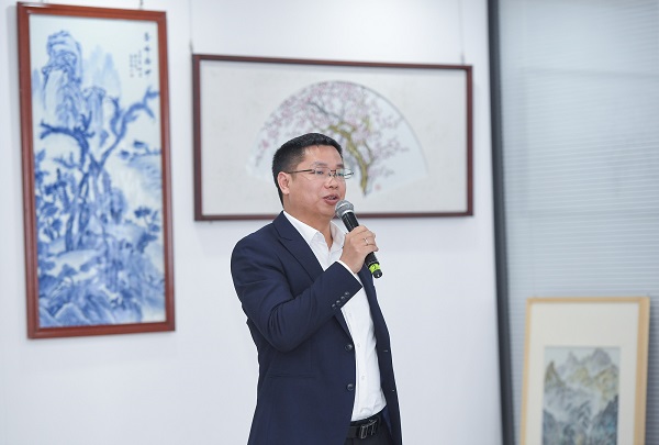 特邀嘉宾王远征先生发表讲话,他首先对到门口文化艺术发展有限公司的成立表示热烈祝贺,对到门口文化艺术发展有限公司的美好未来充满期待,希望公司对景德镇、武汉两地的文化艺术交流发挥桥梁纽带作用,同时将文化艺术作为一项美好事业助力城市发展、丰富群众文化艺术生活。