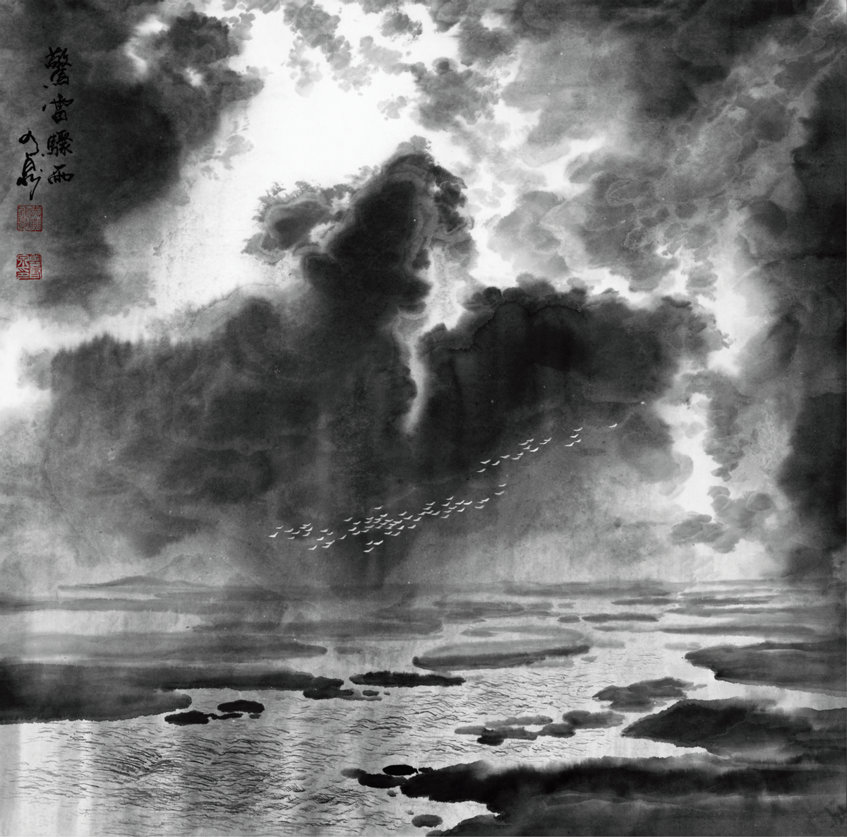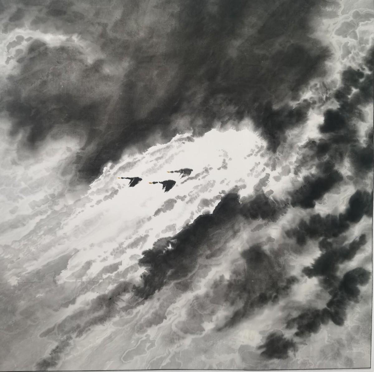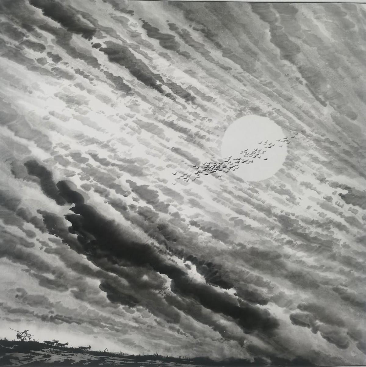 当水墨相融,铺陈于宣纸上时,我们不仅见到了大气清朗、冷傲绵柔的山水冰雪,更见到了坚韧不拔、自强不息的胡杨,不禁让人心驰神往、心旌摇曳。冀有泉笔下的胡杨苍劲、古朴、雄奇、老辣,有着苍茫雄浑、大气磅礴、浪漫瑰丽的气韵,彰显着我泱泱中华坚韧不拔、凌然不屈的胸襟与气魄!