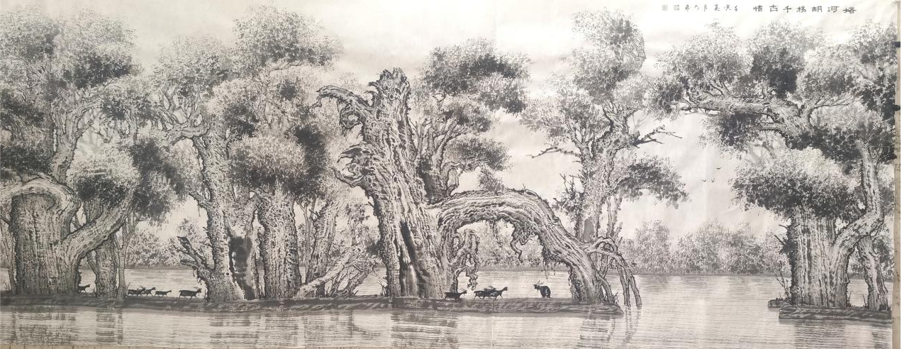 逾沙轶漠见胡杨 丹青挥洒扬国魂