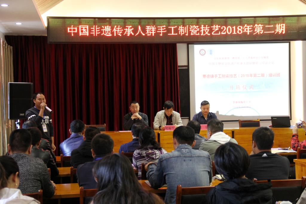 10月29日,文化和旅游部、教育部、人力资源和社会保障部中国非物质文化遗产传承人群研修培训计划“景德镇手工制瓷技艺”2018年第二期“陶瓷成型”普及培训班在景德镇陶瓷大学正式开班,来自全国10个省市的50位手工制瓷技艺传承人共聚一堂,参加为期一个月的学习培训。景德镇陶瓷大学继续教育学院院长何裕宁、陶瓷美术学院副院长赵传玉以及相关工作人员出席开班仪式。
