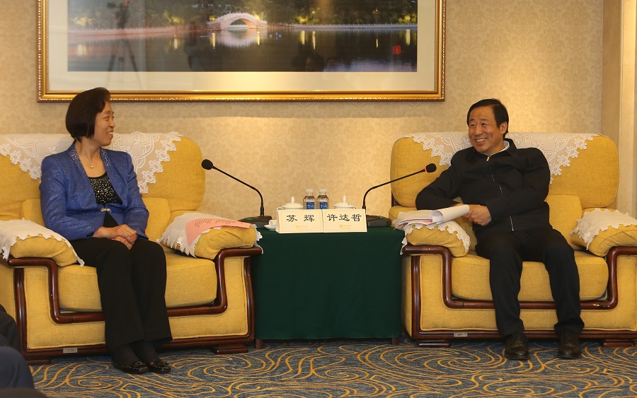 省委副书记、省长许达哲向全国政协副主席、台盟中央主席苏辉等嘉宾介绍湖南文化事业发展情况。以上图片均由湖南日报记者 赵持 摄