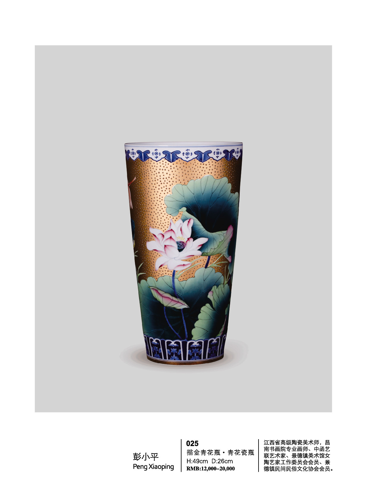 10月22日,由2018中国景德镇陶瓷博览会执委会主办、江西景诚拍卖有限公司、江西大瓷网科技有限公司联合承办的“纪念改革开放40周年”中国景德镇陶瓷博览会陶瓷艺术品拍卖会在紫晶宾馆举行。本次拍卖会拍品108件,成交76件,成交额476万元,其中江西省高级工艺美术师彭小平陶瓷综合装饰作品《描金青花荷塘清趣》以1.2万元成交。